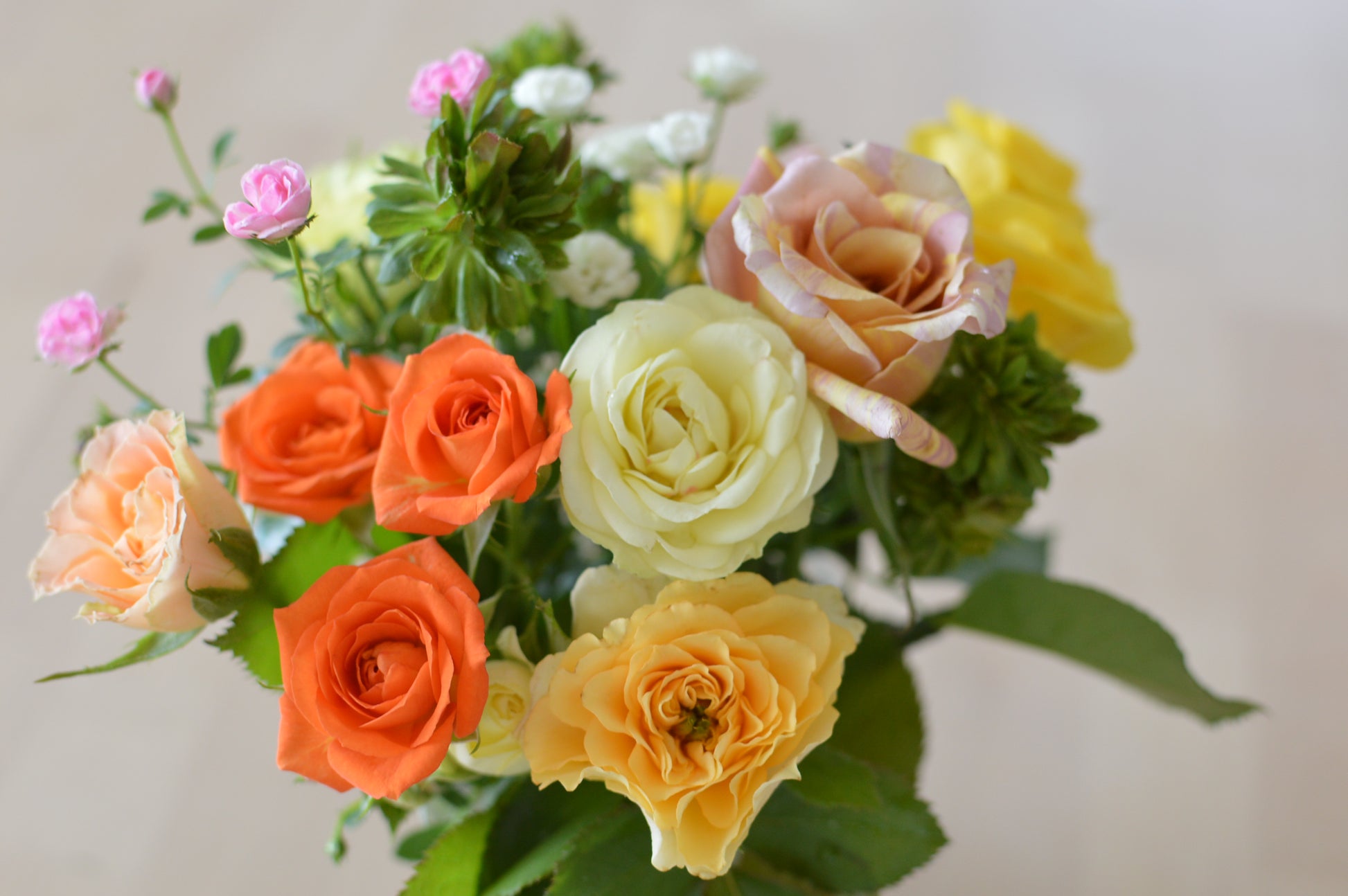 猫にとって安全性の高いさまざまな形やお色味のバラを、10本前後の花束にしてお送りします。